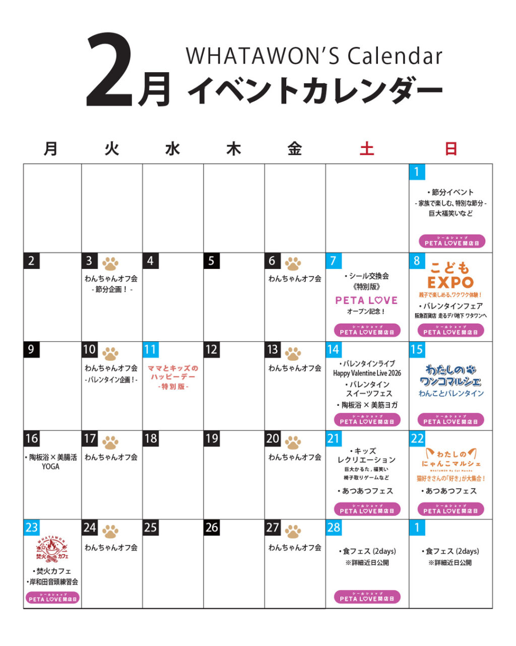 WHATAWON 2月イベントカレンダー