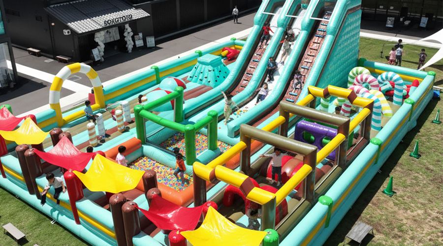 迫力満点のスライダーで、子どもも大人も全力で楽しめる。