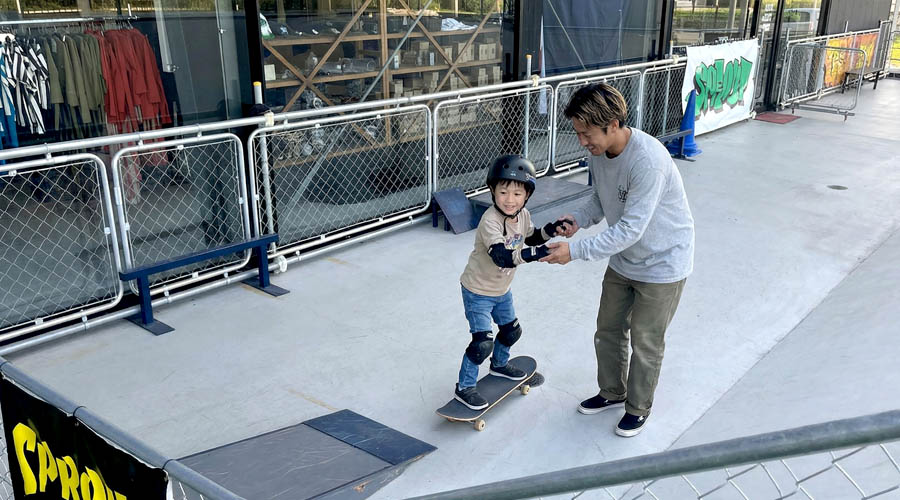 人気急上昇中のスケボーを屋外型のスケボーパークで。